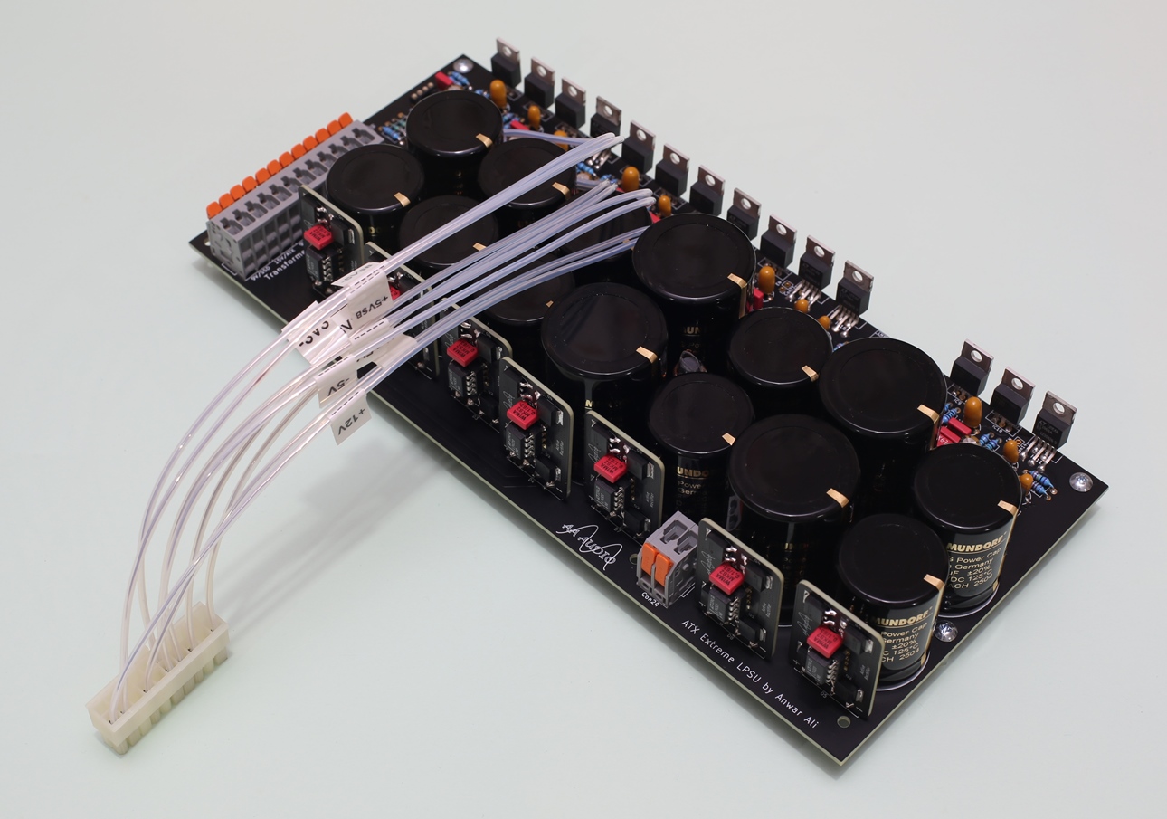 | Transformer(s) | Custom Toroidy 300 VA for ATX, SSDs, USB DAC Toroidy 150 VA for 12V EPS |